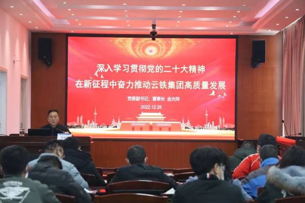 - 12月26日,公司黨委副書記、董事長金光祥為所在黨支部和聯(lián)系黨支部黨員宣講黨的二十大精神。金光祥結(jié)合自身學(xué)習(xí)體會,緊貼云鐵集團發(fā)展實際,從黨…