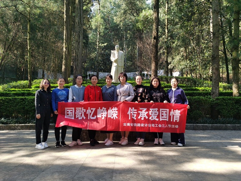 設(shè)計公司組織全體女職工爬西山、瞻仰聶耳墓、參觀南洋機工紀念館,全體女職工在聶耳墓前懷著崇敬的心情,唱響國歌,用歌聲來緬懷人民音樂家聶耳,用歌聲來表達愛國之情。