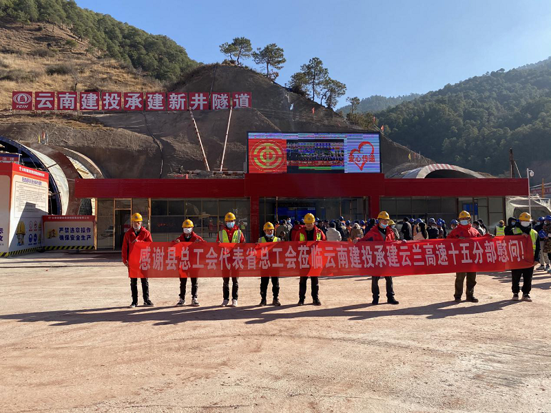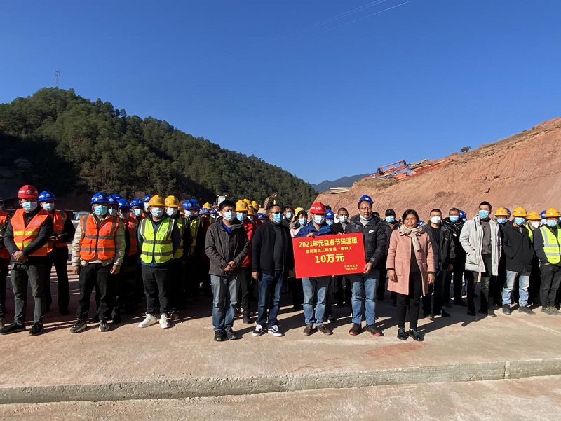2月1日上午,受省總工會(huì)委托,蘭坪縣總工會(huì)常務(wù)副主席楊臣剛,蘭坪縣總工會(huì)副主席李彩慧,蘭坪縣交通運(yùn)輸局副局長(zhǎng)施勁松,總承包部副指揮長(zhǎng)周楊佳一行深入云蘭高速十五分部施工現(xiàn)場(chǎng),看望慰問(wèn)項(xiàng)目一線的農(nóng)民工們,為他們送上春節(jié)禮物和新春祝福。